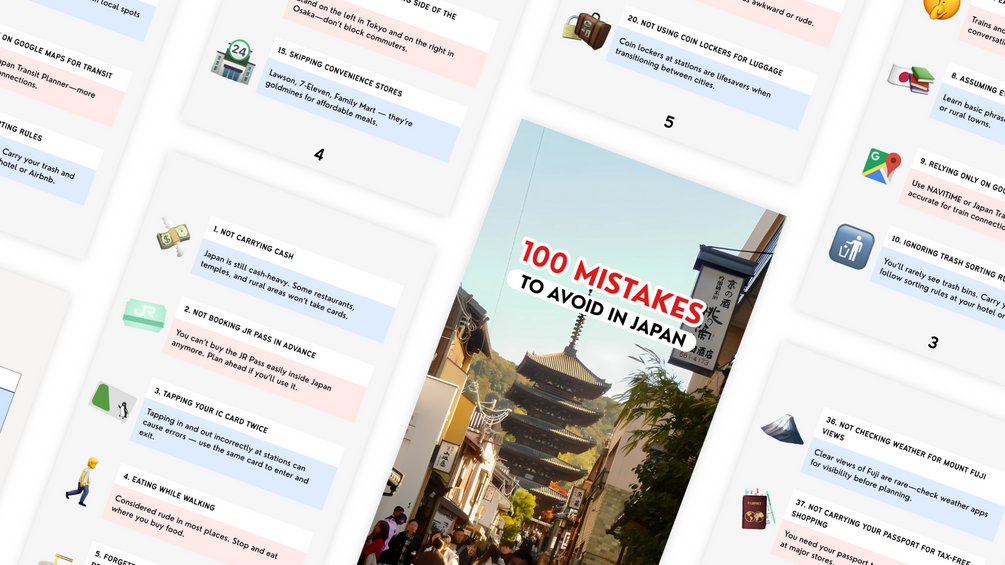 That’s just 5 out of 100. Each mistake includes a quick tip on what to do instead, so you can enjoy Japan without the unnecessary costs or stress.